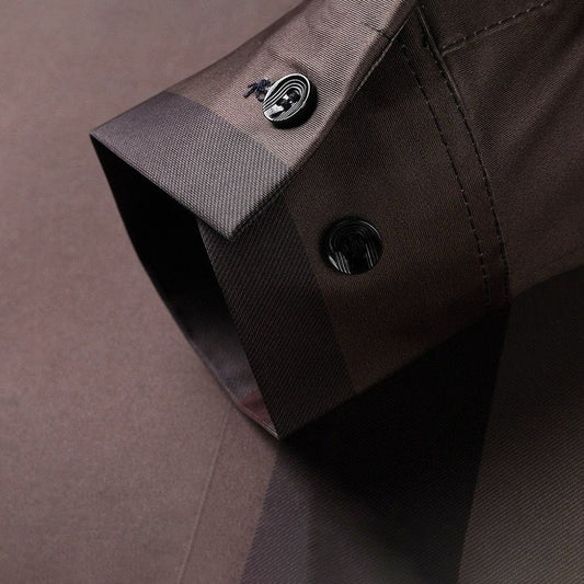 Forest Edge Stripe Full Sleeve Cotton Check Shirt (BROWN L)