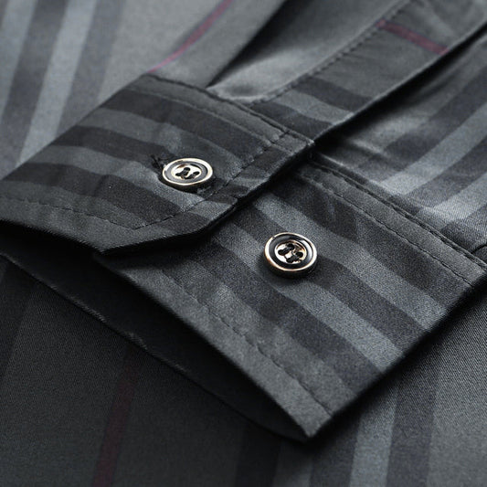 Forest Edge Stripe Full Sleeve Cotton Check Shirt (GREY L)